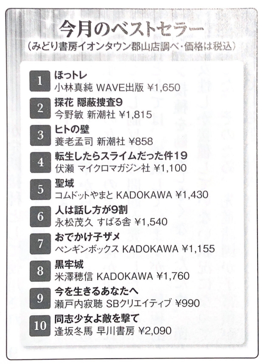 今月のベストセラー 2022年2月掲載 2022年2月19日 最終更新日時 : 2022年2月19日 matinohikoriyama 世界はありのままに見ることができない。 ドナルド・ホフマン著 青土社 みどり書房イオンタウン郡山店さん お勧めに1冊