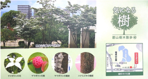 ヤマボウシはミズキ (地方名:ダンゴギ) の仲間で、 郡山周辺の山にも自生していますが、街路樹