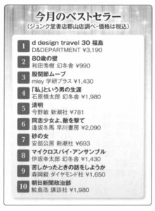 1.d design travel 30 福島 D&DEPARTMENT ¥3,190 80歳の壁 和田秀樹 幻冬舎 ¥990 股関節ムーブ miey 学研プラス ¥1,430 「私」という男の生涯 石原慎 […]